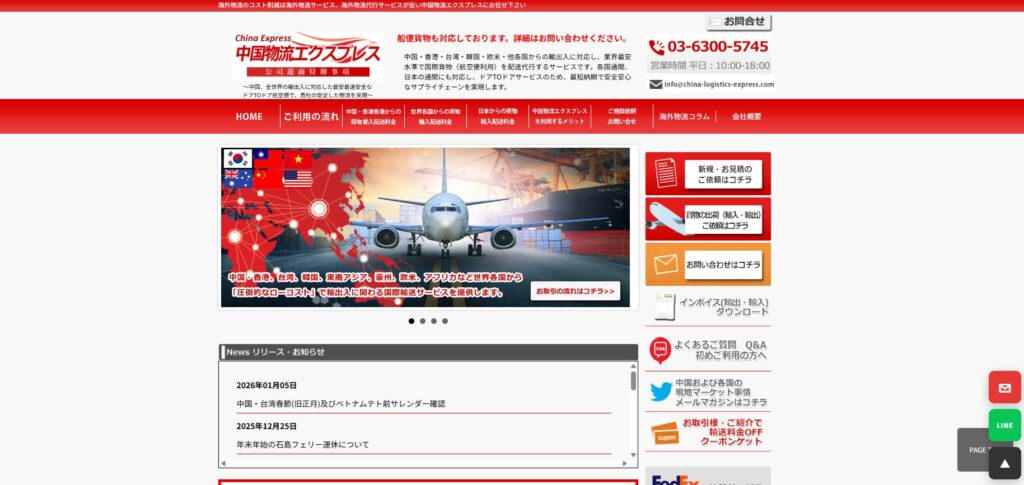 中国物流エクスプレスでは、航空便・船便・越境EC物流・商業貨物輸送まで幅広く対応し、お客様の条件に合わせた最適な輸送プランをご提案しています。日本から海外への発送をご検討中でしたら、ぜひお気軽にお問い合わせください。